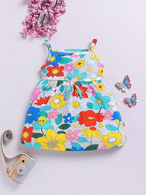 multi colored cotton blend fit & flare dressgirls printed shoulder strap fit and flared dress