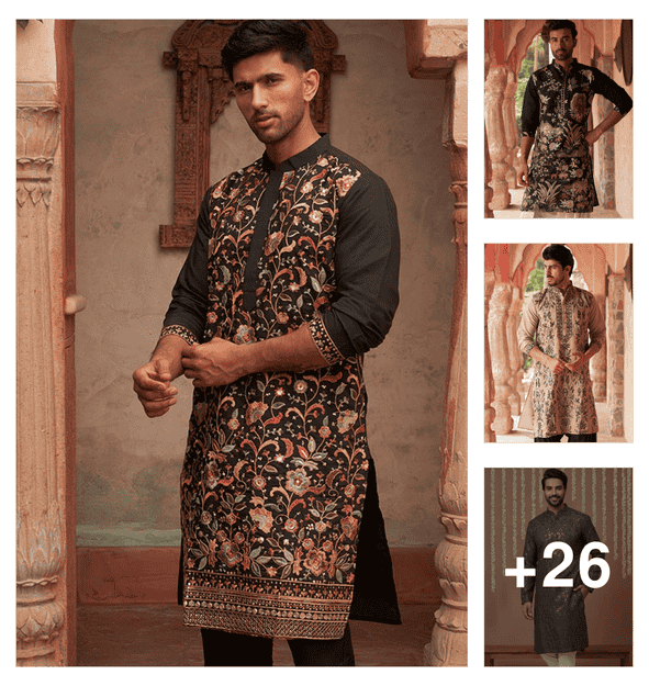 men embroidered mandarin neck long kurta