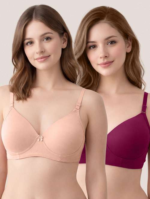 POOJA RAGENEE Experience everyday comfort with this lightly padded bra designed for natural shape and gentle support. The soft, breathable fabric feels smooth on your skin and keeps you fresh all day. Wire-free full-coverage cups prevent spillage while offering a secure, flattering fit. Light padding provides modest coverage without bulk, making it perfect under fitted outfits. Adjustable straps and a stretchable under band ensure a customized, comfortable fit for daily wear, office hours, or relaxed lounging. Key Features 1. Fabric: Soft breathable blended fabric 2. Padding: Lightly padded 3. Wire: Wire-free 4. Coverage: Full coverage 5. Comfort: Soft, breathable, no irritation