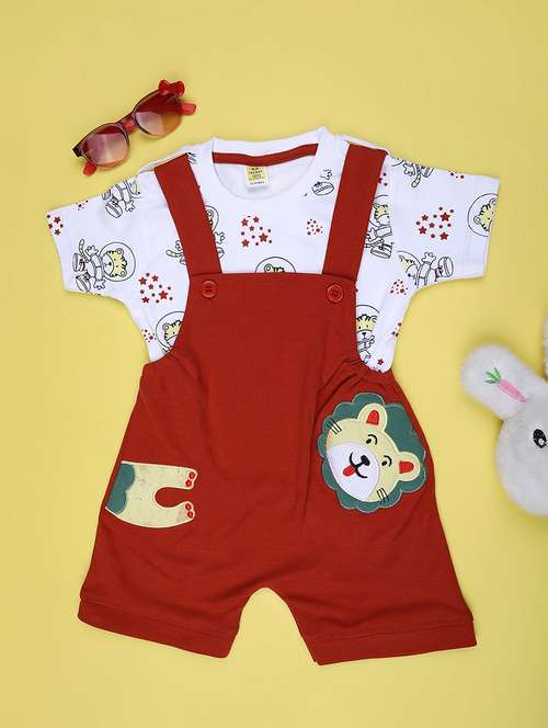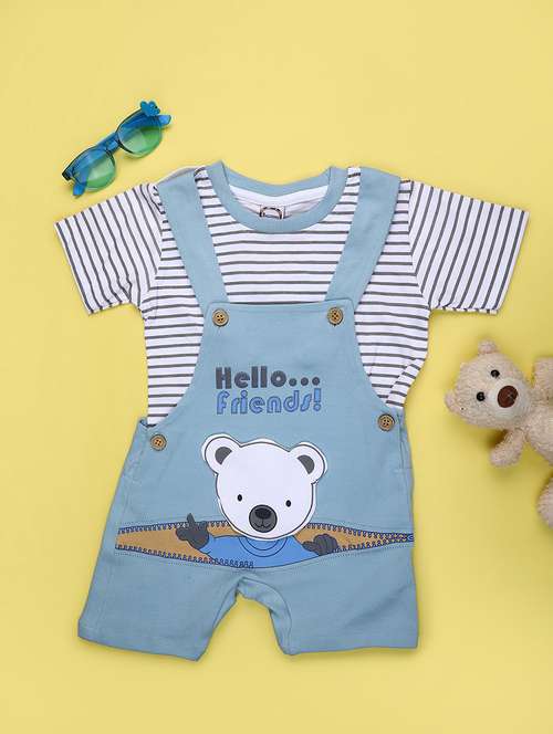 kids printed short sleeve dungaree